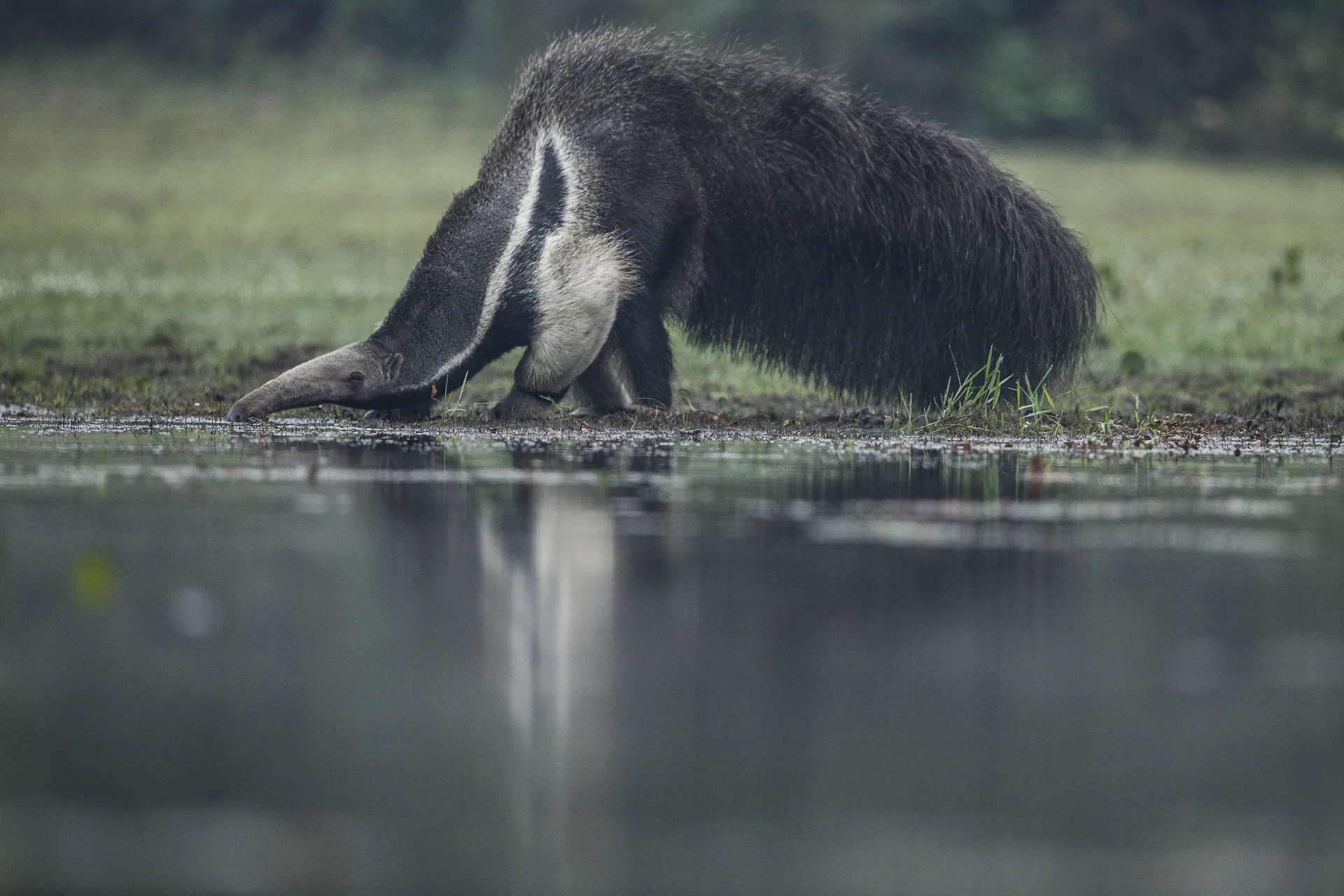 A giant anteater takes a drink.
